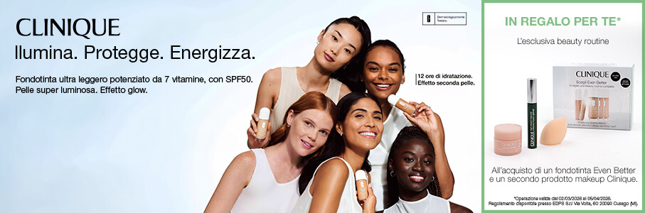 Benvenuti in Clinique. Fondata nel 1968 con questa filosofia:" si può ottenere una pelle stupenda". Clinique è stata la prima marca cosmetica creata da dermatologi. Siamo convinti che ogni pelle possa diventare stupenda. Ecco perché tutti i nostri prodotti sono formulati su misura di ogni Tipo di Pelle e di ogni esigenza. Tutte le formule di trattamento e makeup Clinique sono Provati Contro le Allergie e Privi di Profumo al 100%.
