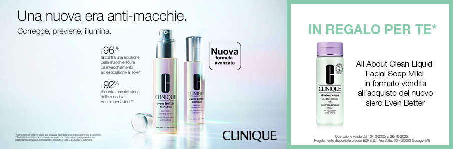 Benvenuti in Clinique. Fondata nel 1968 con questa filosofia:" si può ottenere una pelle stupenda". Clinique è stata la prima marca cosmetica creata da dermatologi. Siamo convinti che ogni pelle possa diventare stupenda. Ecco perché tutti i nostri prodotti sono formulati su misura di ogni Tipo di Pelle e di ogni esigenza. Tutte le formule di trattamento e makeup Clinique sono Provati Contro le Allergie e Privi di Profumo al 100%.